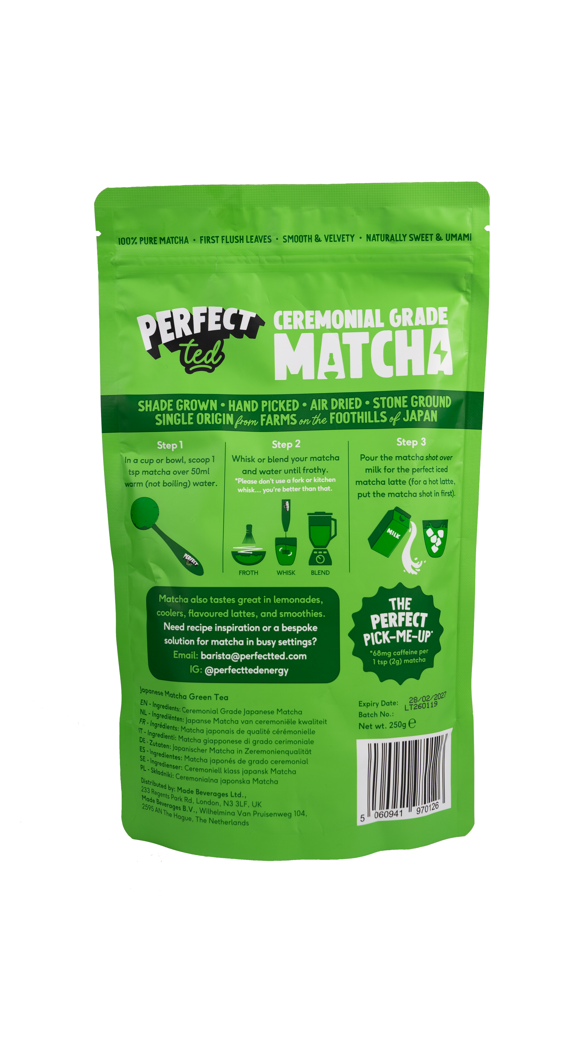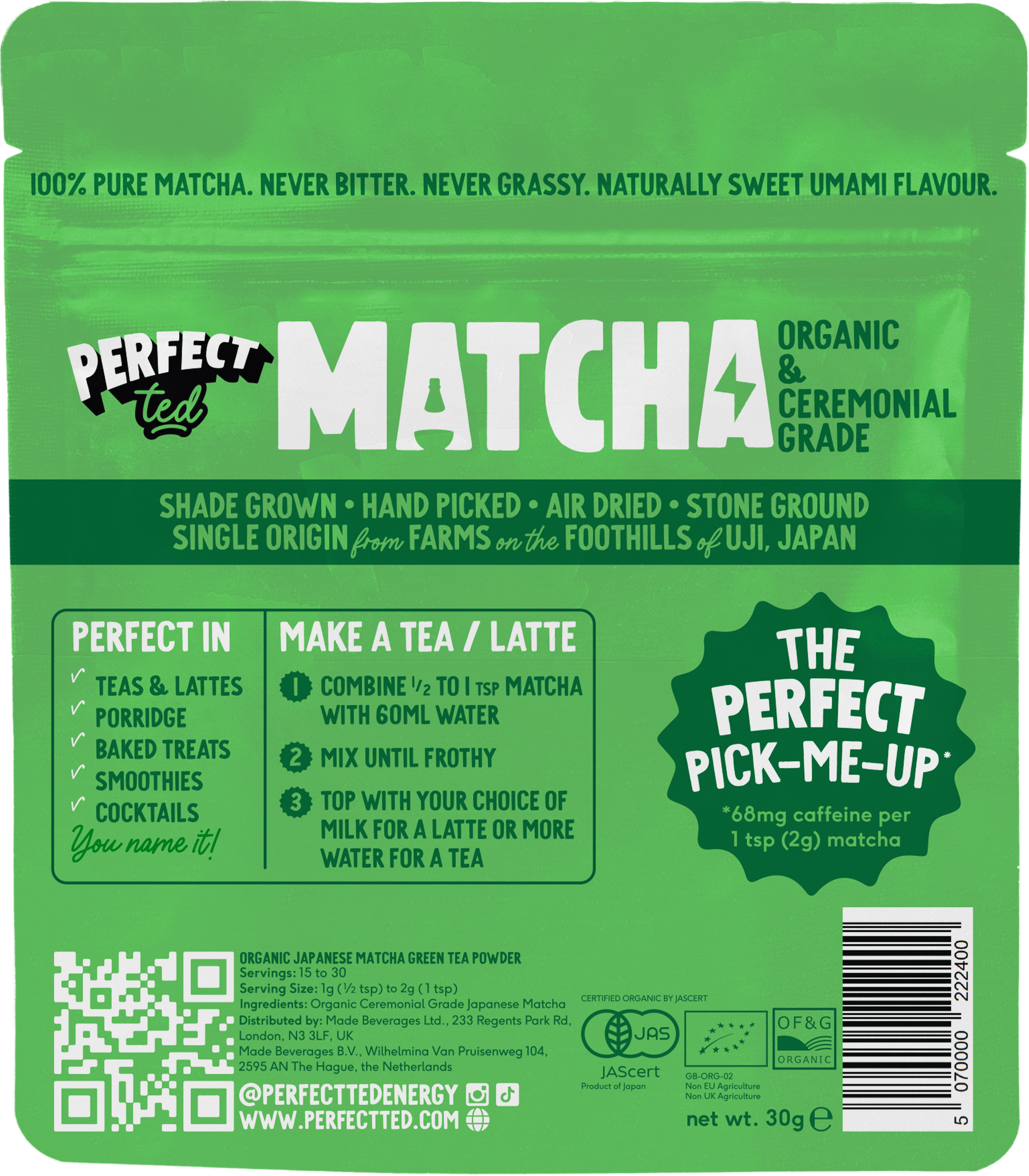 Matcha is a finely ground green tea powder celebrated for its vibrant colour, smooth taste, and powerful health benefits. Matcha delivers a concentrated dose of antioxidants and nutrients, while providing calm, sustained energy, thanks to a unique combination of caffeine and L-theanine.