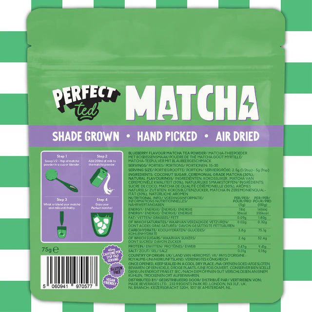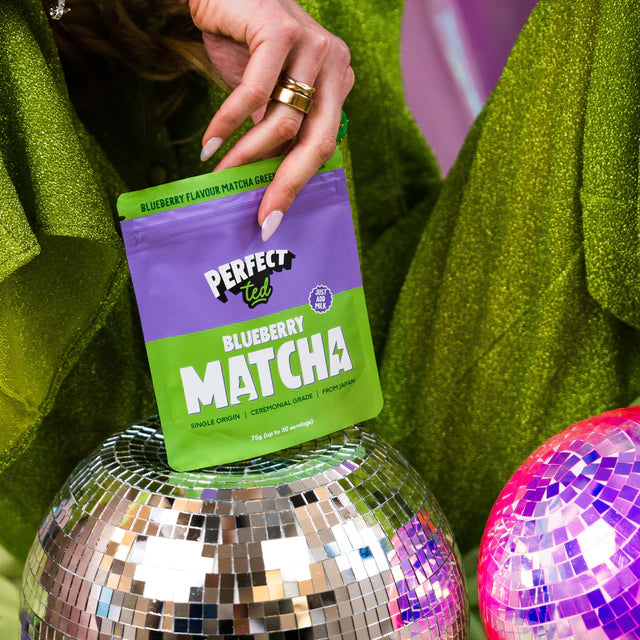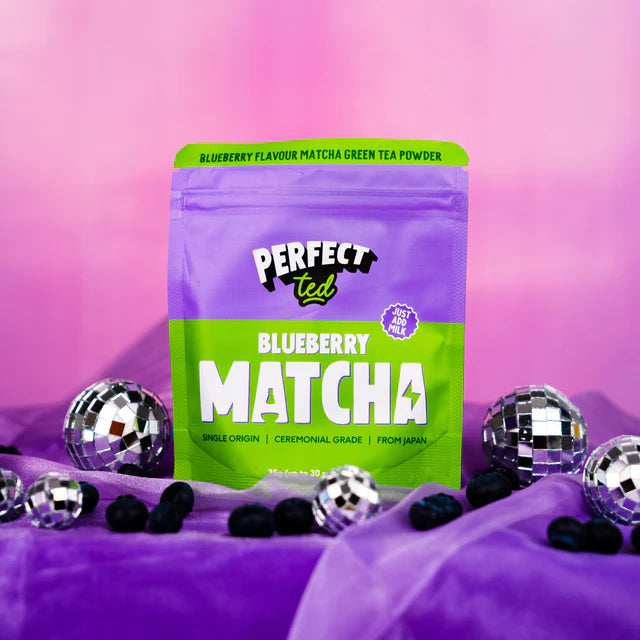 Gladek, naravno sladek ceremonialni matcha prašek z okusom borovnic.